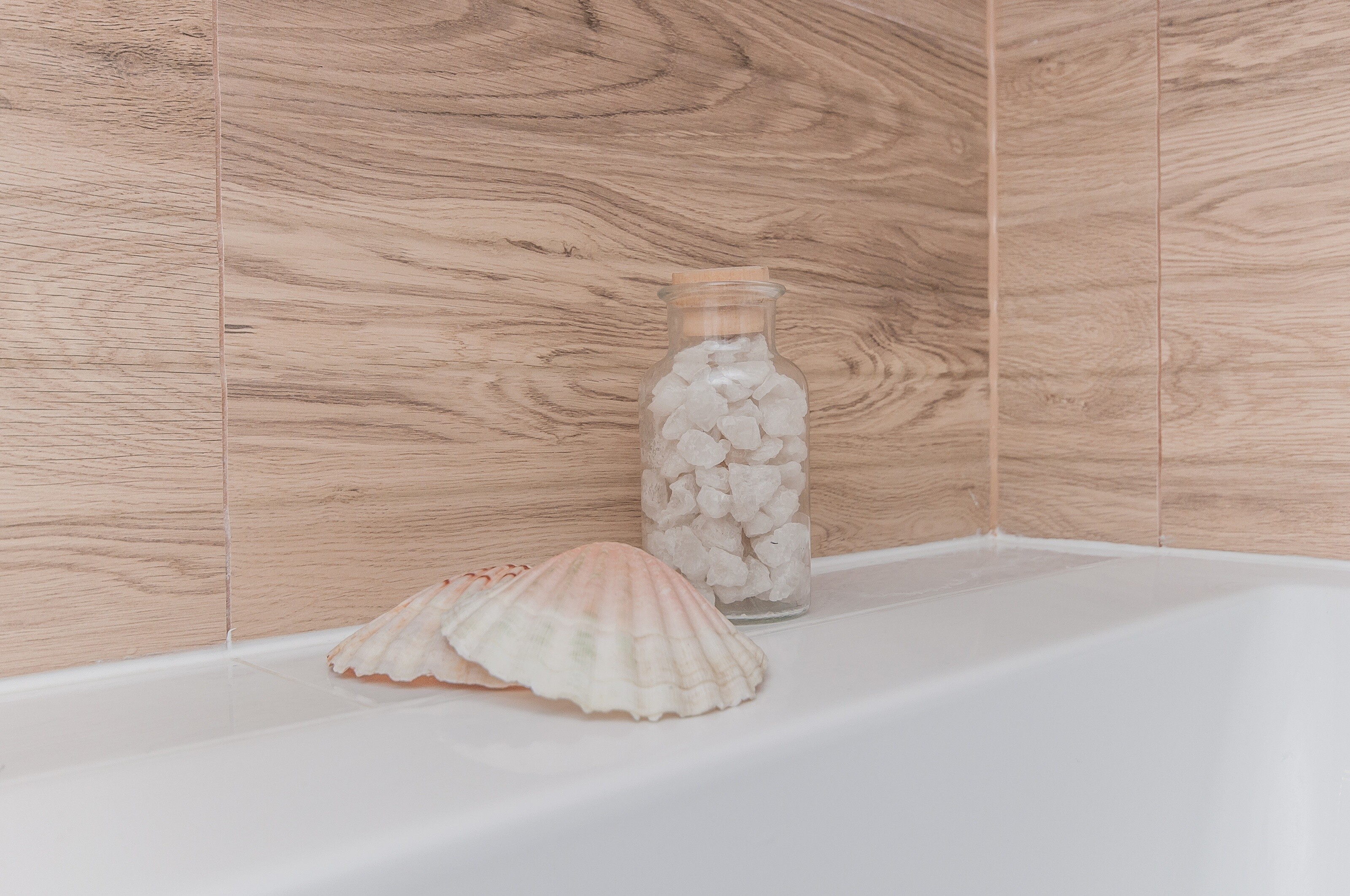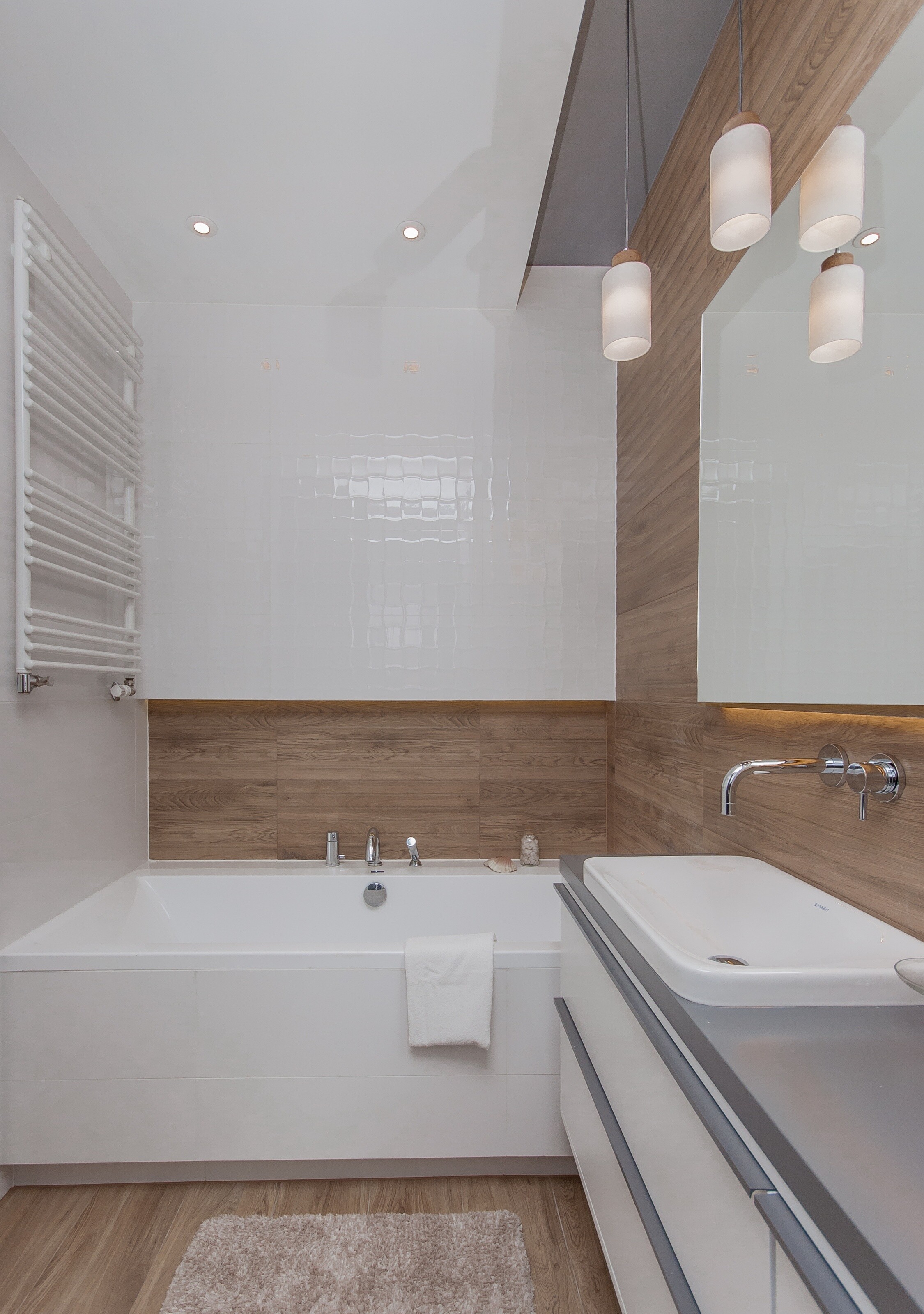 Jasna łazienka z akcentem drewna